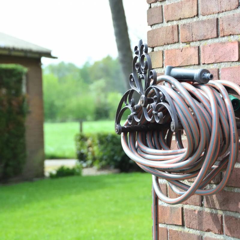 Ce dérouleur très décoratif, est surmonté de magnifiques volutes, il s'intégrera ainsi parfaitement dans votre décoration extérieure. Vous l'adopterez aussi pour son côté pratique et utile.