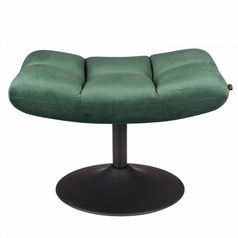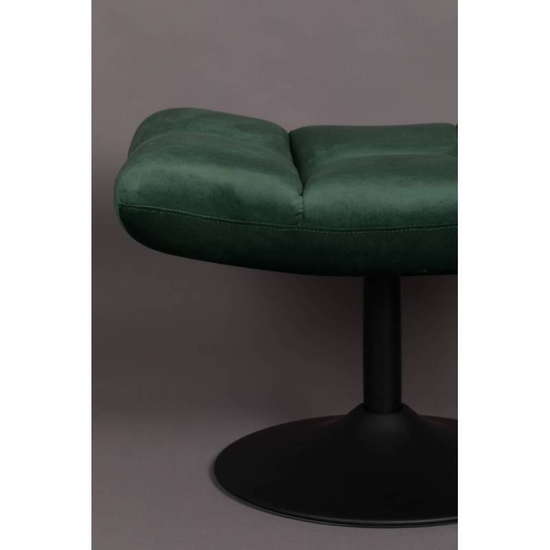 Dérivé du fauteuil Bar, ce pouf est doté de la même fabrication: une armature en acier noir garnie de mousse et de velours vert, un produit de grande qualité.