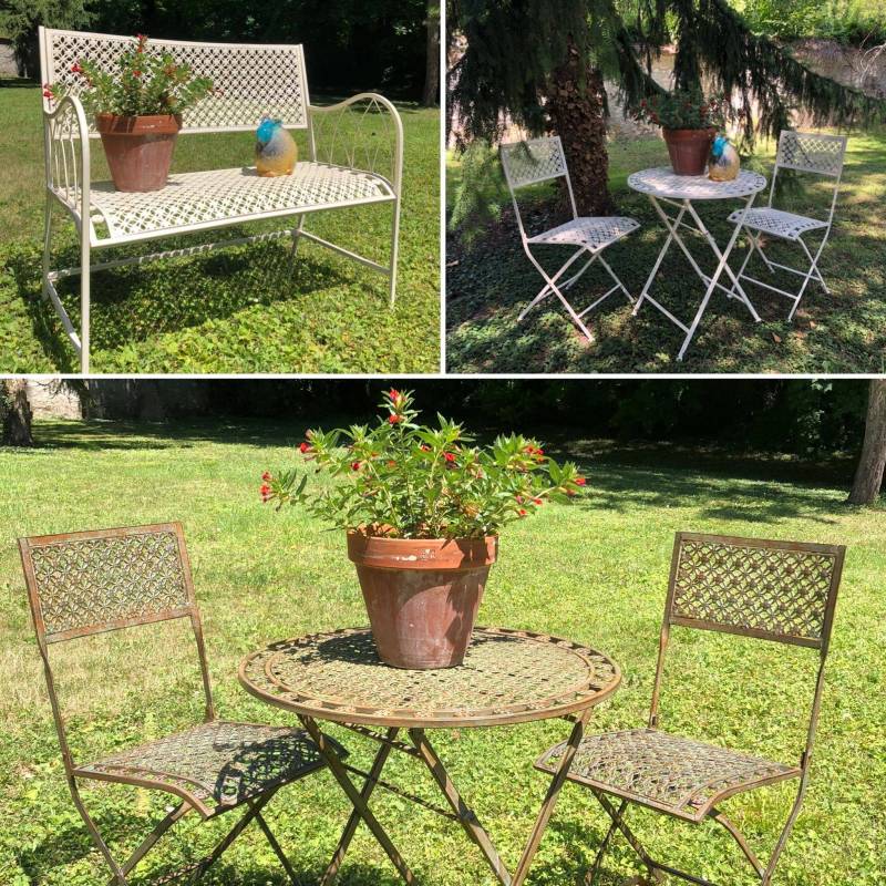 Banc de Jardin Auguste !! Tout en métal de couleur blanche, vous pourrez observer une