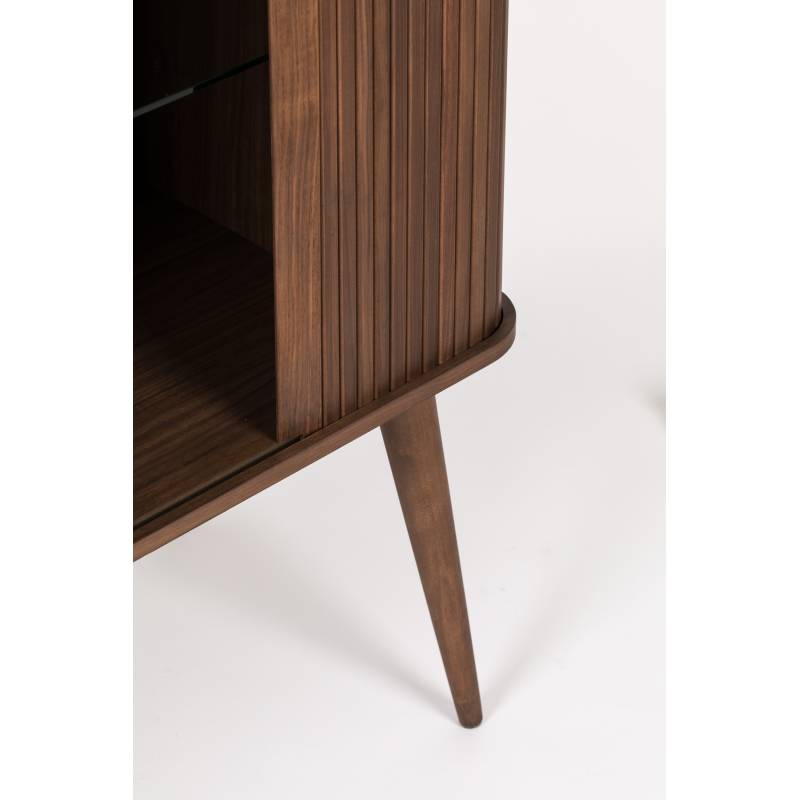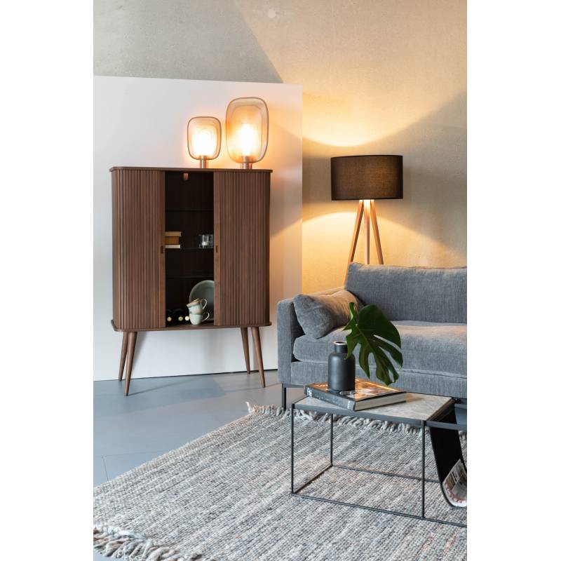 Haut sur ces pieds en hévéa et habillé de placage noyer, ce vaisselier accueille trois étagères en verre réglables en hauteur. Grâce à ses portes en placage noyer, ce buffet vous permettra un rangement optimal de votre vaisselle, objets de décoration ou encore des livres à l’abri de la vue et de la poussière.
