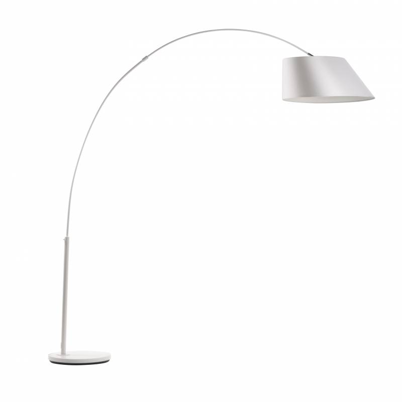 Total look blanc pour ce modèle de lampe sur pied, on apprécie le détail design du produit.