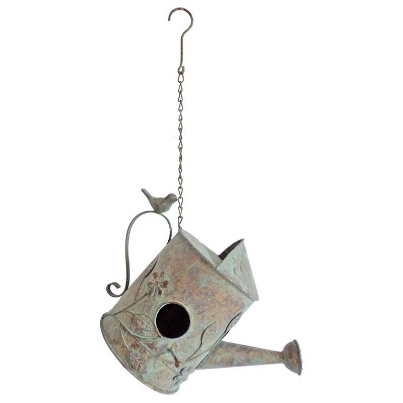 Ce nichoir à suspendre en forme d'arrosoir deviendra la cabane des petits oiseaux qui vivent dans votre jardin. Le petit renfoncement au-dessus vous servira pour déposer des graines afin de les nourrir.