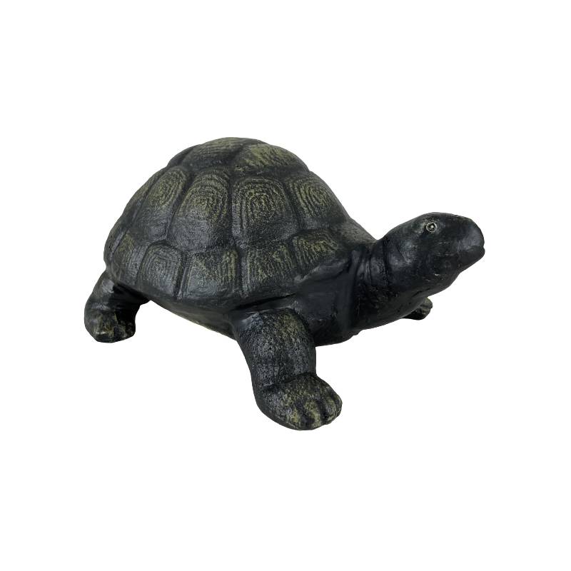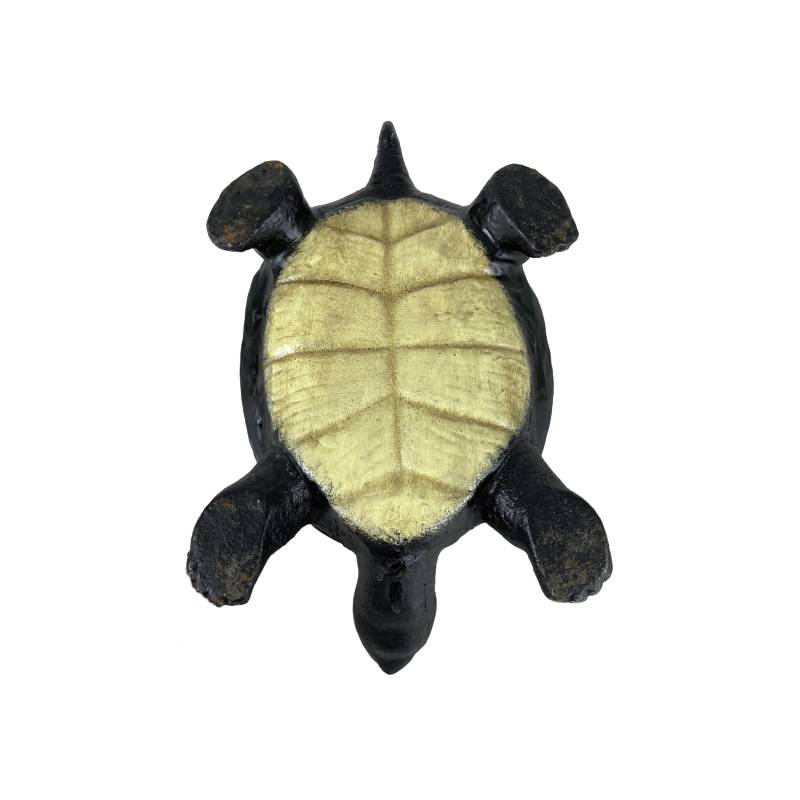 Cette dernière née est réalisée en fonte patinée de couleur marron. Sur son ventre vous remarquerez une touche de doré qui ajoute plus de brillance à l'ensemble.