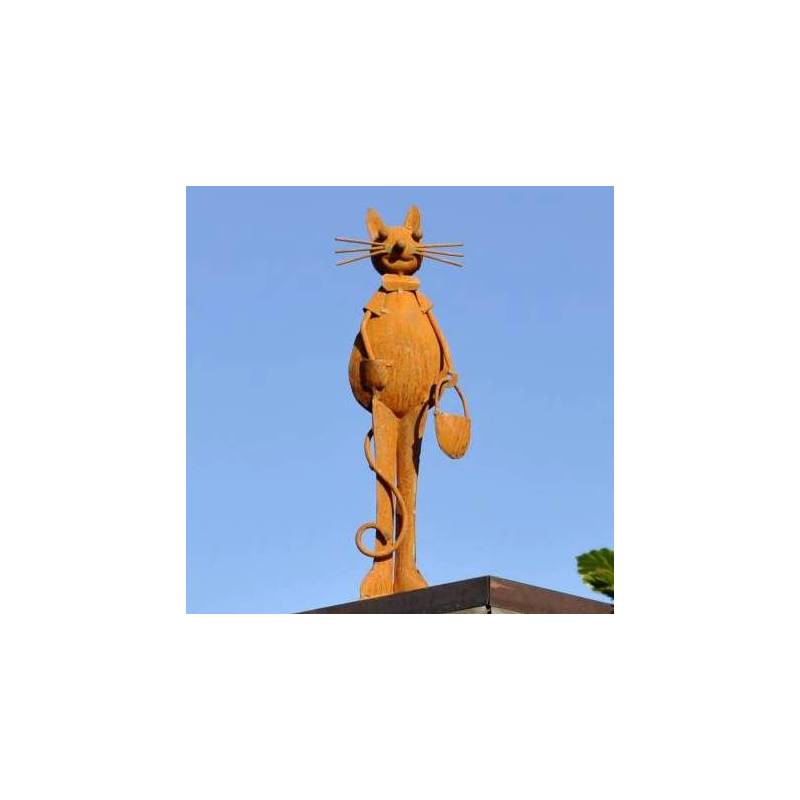 Intégrez un esprit félin à votre décoration intérieure ou extérieure d'un style campagne ou brocante, en plaçant cette statue chat en acier oxydé sur votre terrasse, dans votre jardin ou dans votre maison.
