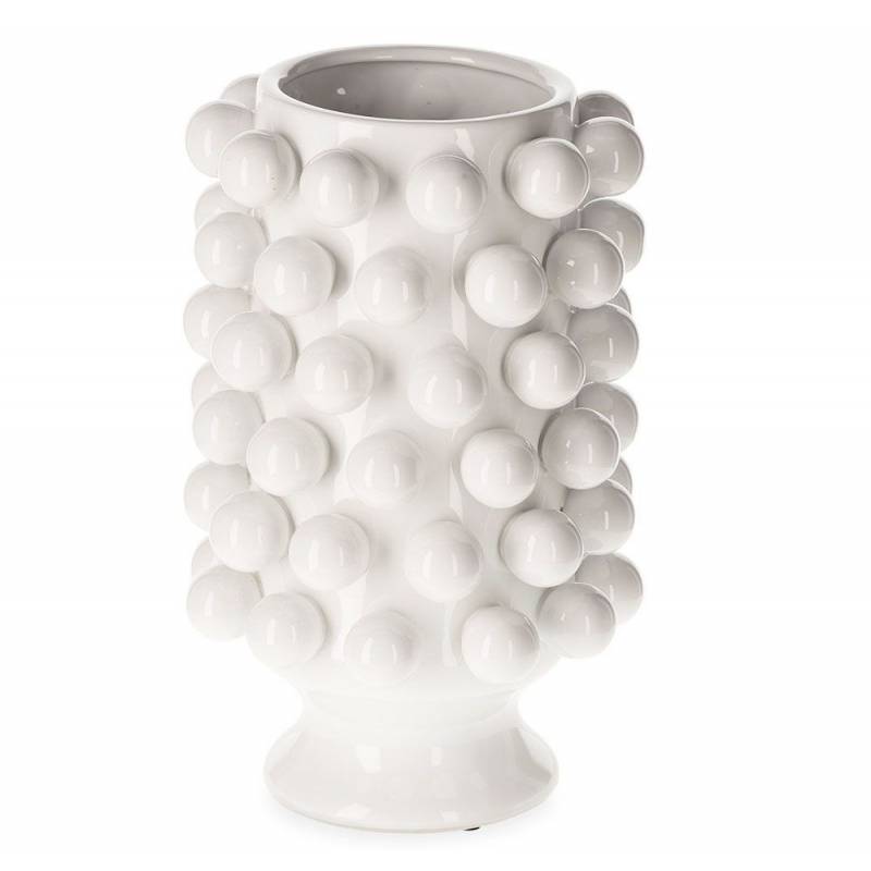 Céramique de Décoration Grappa Blanche Athezza Vase Décoration à Poser en Grès 24,5x24,5x40cm