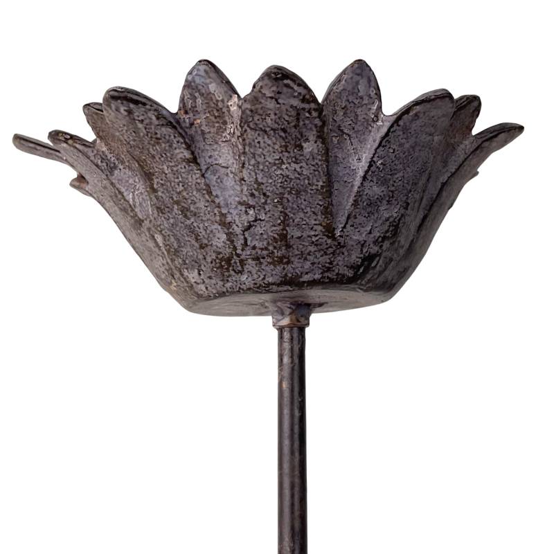Fabriquée en fonte pour la coupelle, vous serez séduits par son travail et sa finition. Sa tige robuste en acier démontable est coiffée d’une jolie coupelle en forme de fleur sur laquelle repose deux petits oiseaux. Sa jolie patine couleur marron lui apporte toute son authenticité. Vous apprécierez le travail sur le bénitier ou vous pourrez admirer le relief de la corolle et des nombreux pétales.