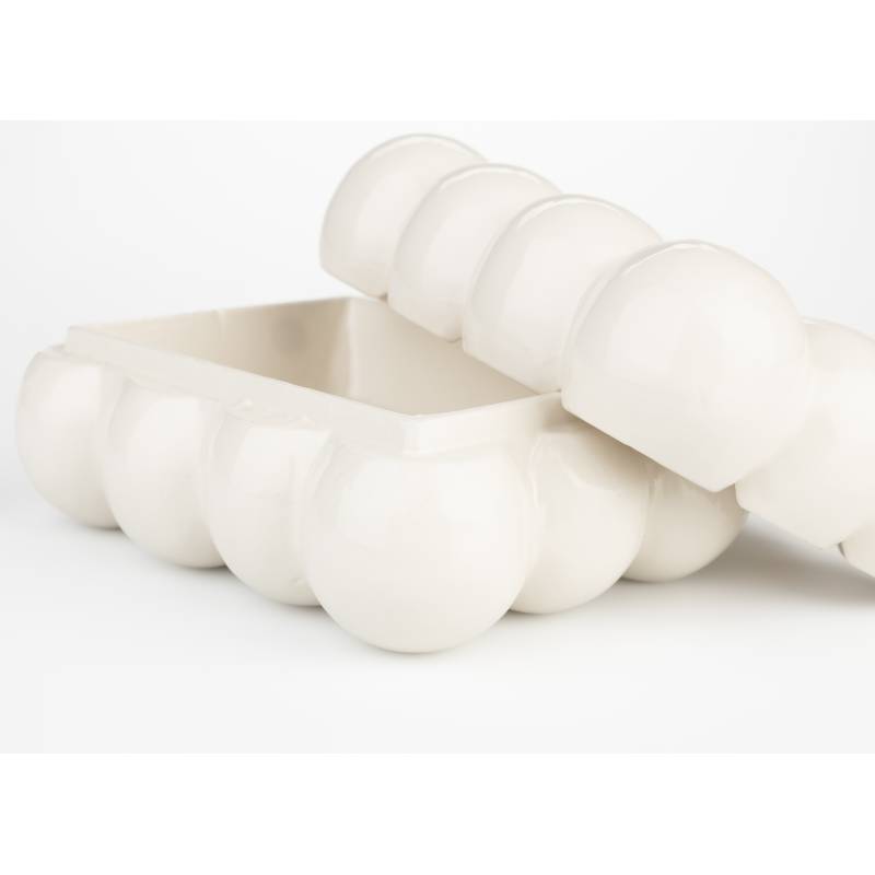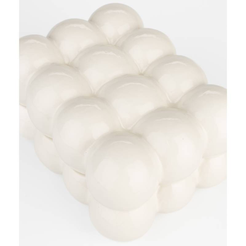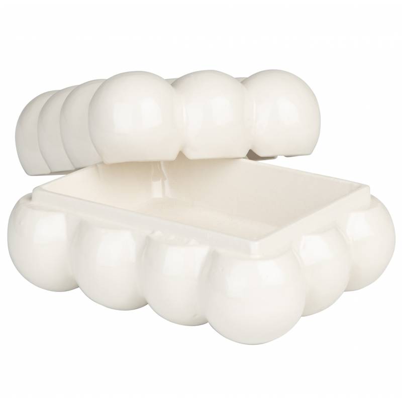 Fabriqué en céramique, cette boite est peinte d’un joli crème laqué. Sa forme originale s’ouvre entièrement, vous permettant de l’utiliser comme vous le souhaitez.