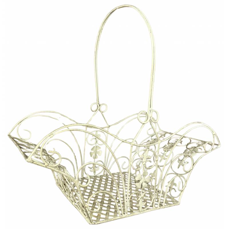 Joliment travaillé de volutes, le fond carré du panier est fait d’un tressage. Solide et rigide, ce support pourra accueillir toutes les compositions ou types de pot.
