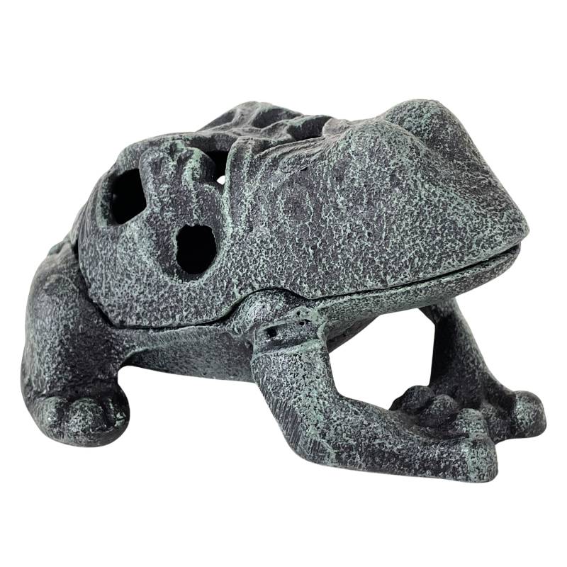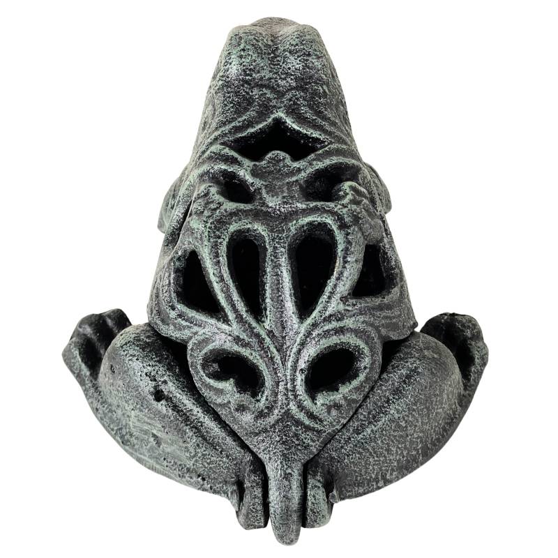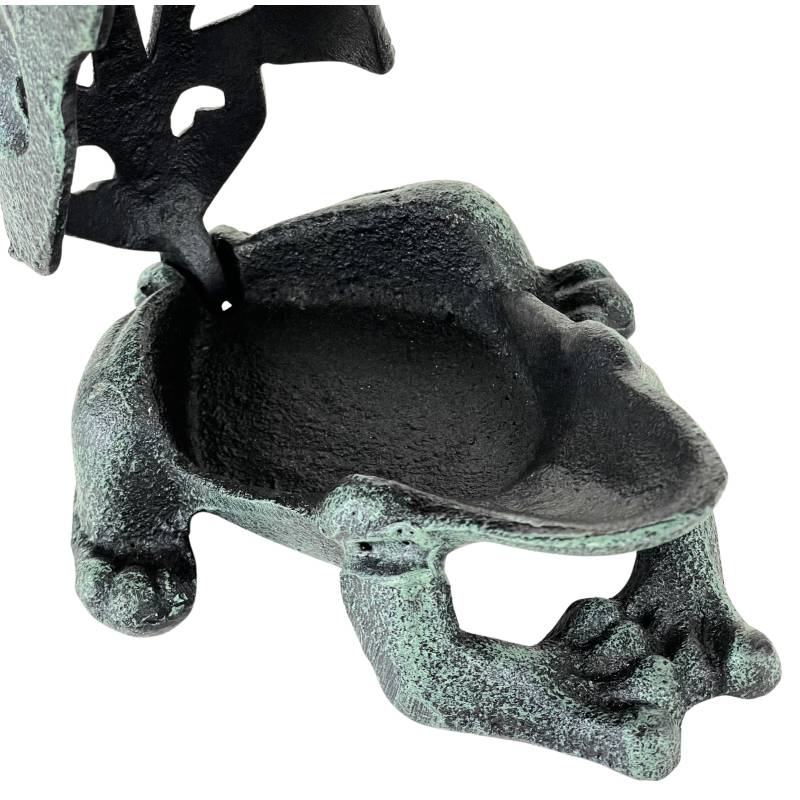 En fonte patinée verte, cette petite grenouille est ajourée. La partie dorsale de ce petit amphibien est ajouré et s’ouvre pour plus d’originalité. Fonctionnel vous pourrez également vous en servir en cache clé ou autre.