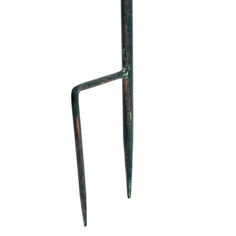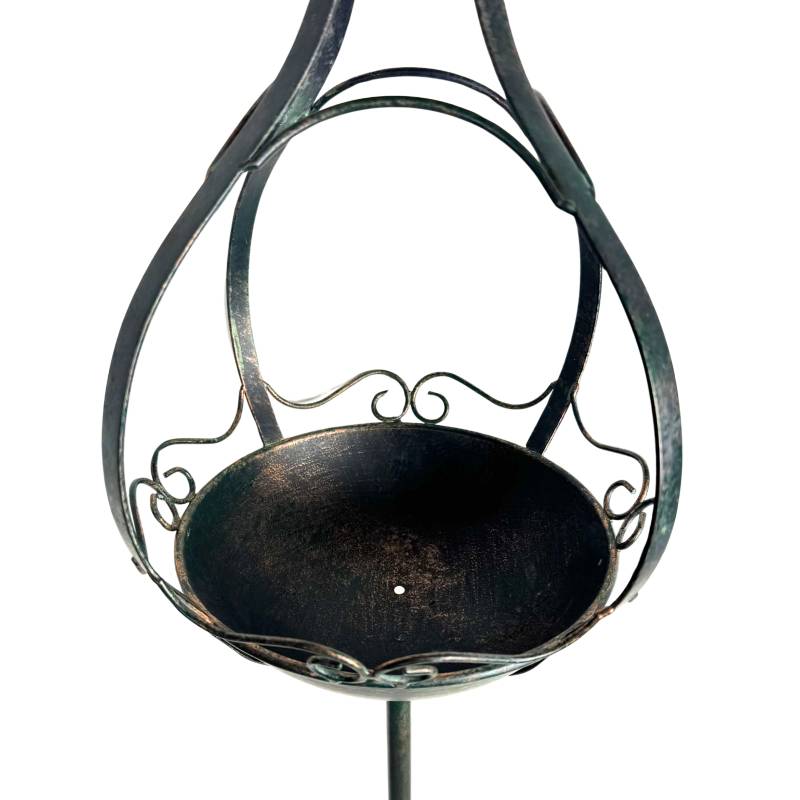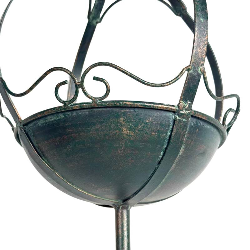 Tout en métal, ce support est patiné d'un joli vert antique, idéal pour se fondre avec élégance dans votre extérieur.
