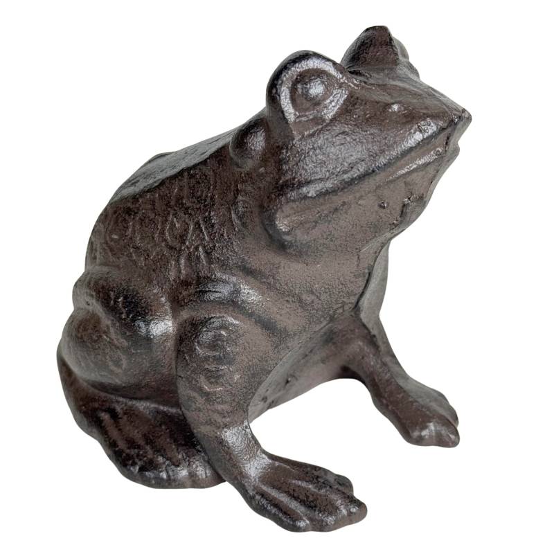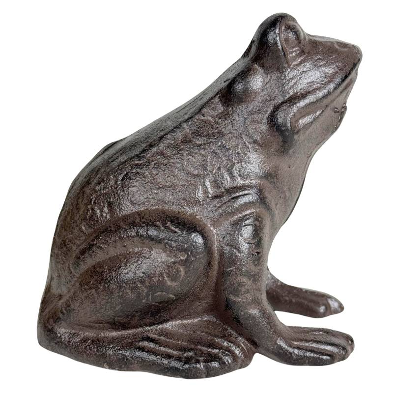 Patinée à l'ancienne de couleur marron, cette grenouille est toute en fonte. Lourde par sa composition, elle est également parfaitement stable.