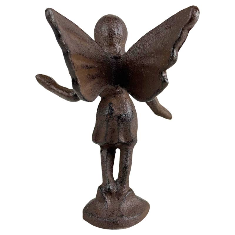Fée en Fonte Patinée Marron Statuette Féérique Décoration de Jardin à Poser 8x10x14,5cm