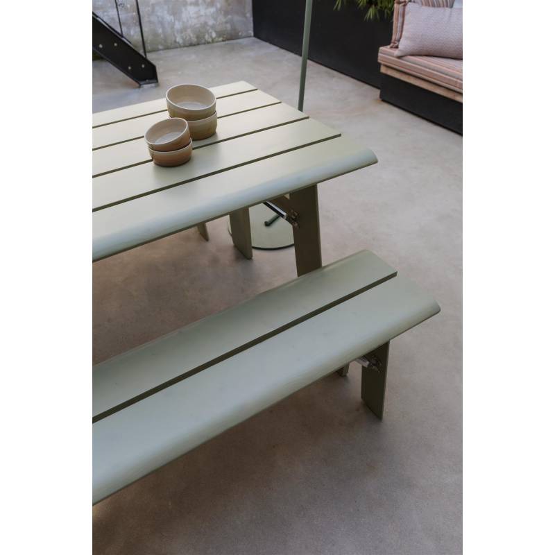 Banc Extérieur Avenue Zuiver Banquette 3 Personnes En Pin Vert Sauge Assise de Jardin 32x47x170cm