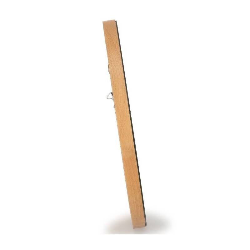 Monté sur une plaque en bois, et de forme ronde, ce modèle est entouré d'un contour en chêne clair.