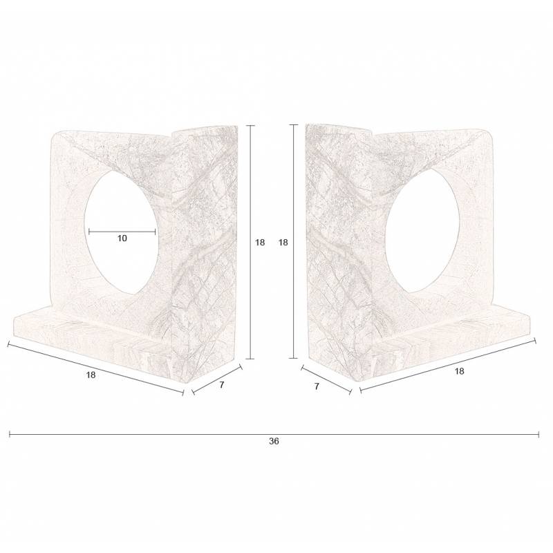 Dimensions d'un serre-livres: hauteur 18cm, longueur 18cm, largeur 7cm.