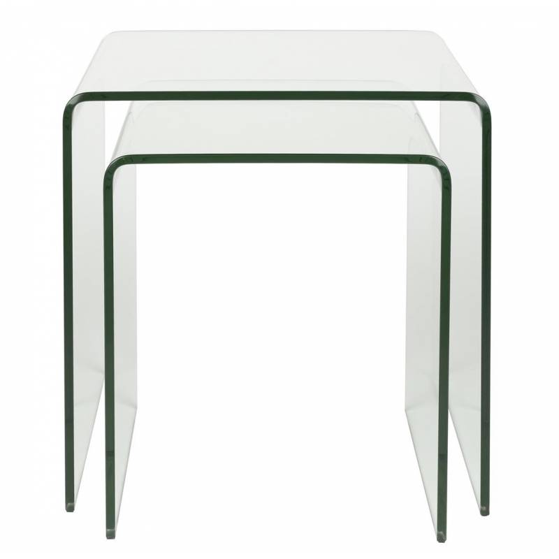 Fabriqué en verre transparent, ce lot de deux sellettes est de forme rectangulaire.