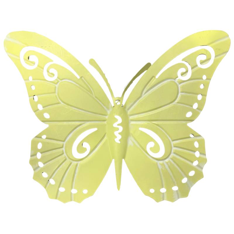 Cette représentation animale est en fer coloré d'une jolie teinte jaune. Avec ses ailes ajourées joliment dessinées, ses deux antennes ce petit papillon apportera une note colorée.