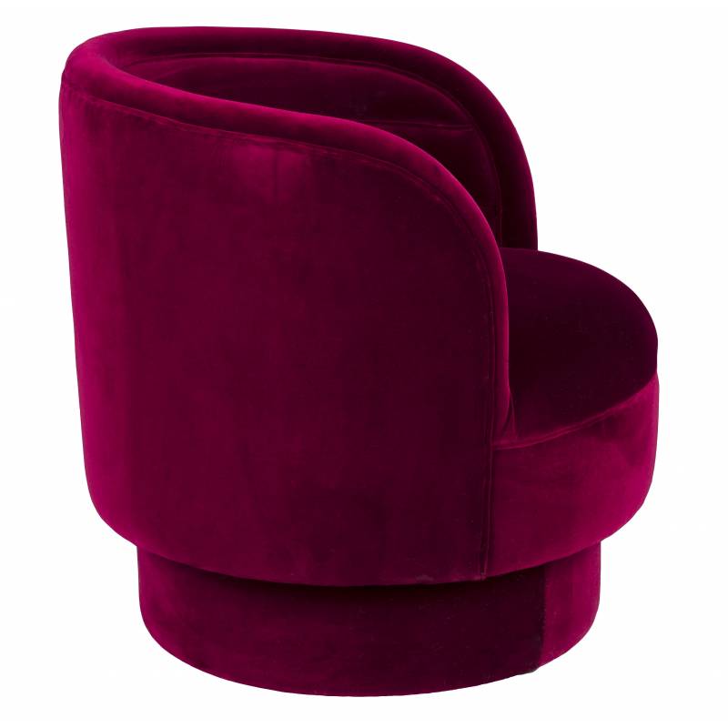 Dutchbone présente sa ligne confort avec ce modèle d’assise de salon pivotant. Sa structure composée de bois, est recouverte de mousse et d’un joli tissu velours bordeaux pour un confort optimal.