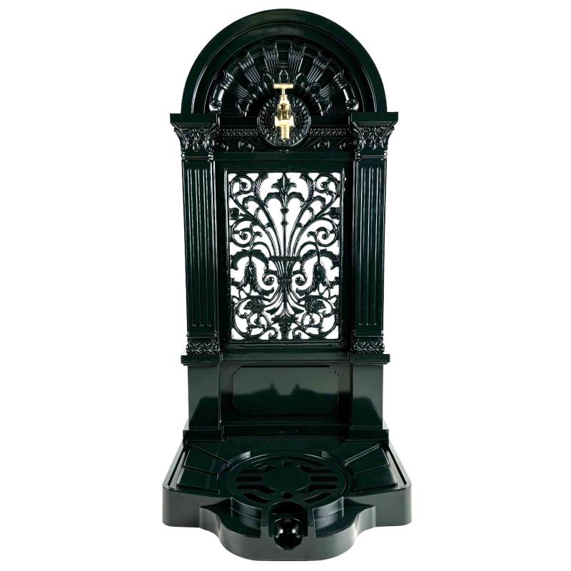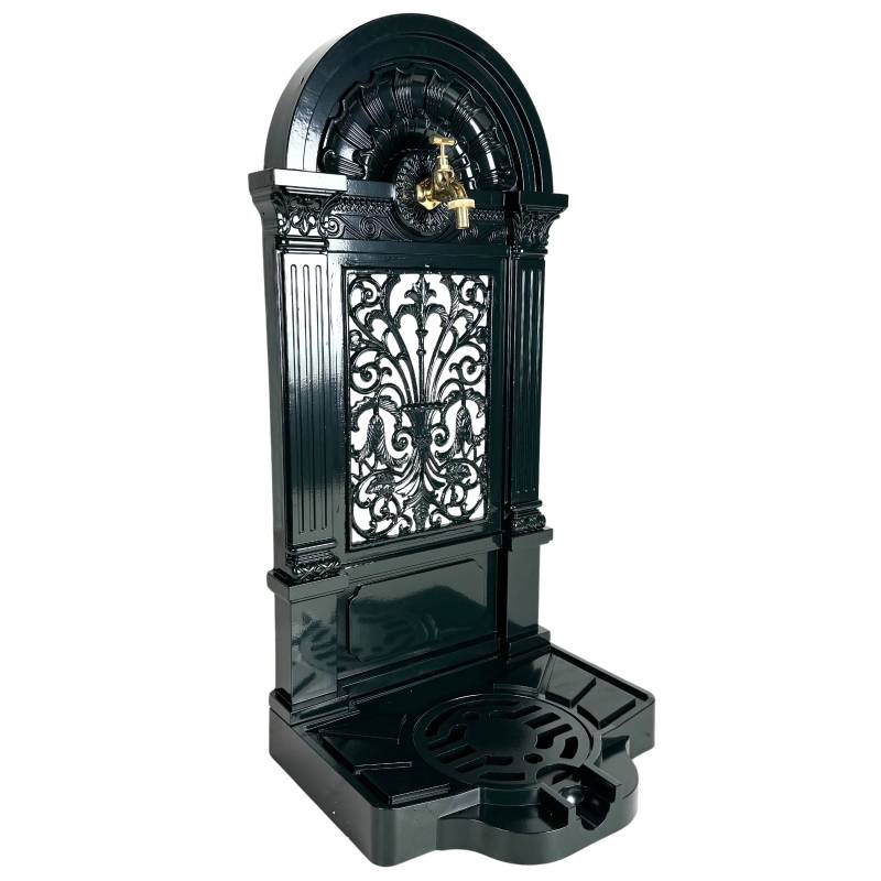 Équipée d’un robinet en laiton fonctionnel, cette fontaine est équipée d'une grille d'évacuation intégrée et le réceptacle récupérateur d’eau assurent un écoulement propre et efficace.