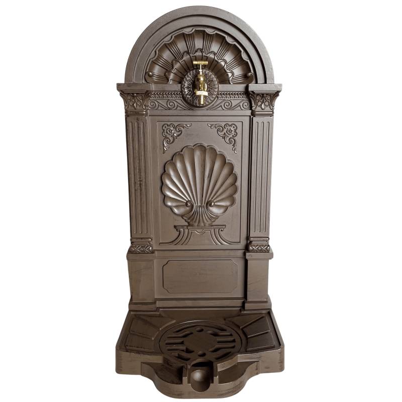 Entièrement conçue en fonte d'aluminium patinée marron et d'un robinet en laiton, cette source à poser arbore une décoration raffinée.