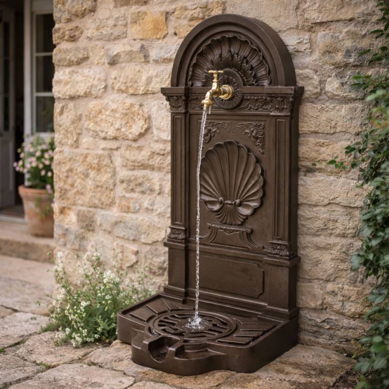 Le réceptacle récupérateur d'eau est muni d'une grille amovible et d'une évacuation. Livrée à monter, cette décoration de jardin est compatible avec une arrivée d'eau au mur. Ce modèle alliera à la perfection prestance et fonctionnalité dans votre jardin.